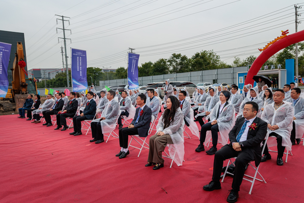在当天的开工仪式上,史佩浩董事长宣布项目正式奠基,随后举行了剪彩和培土环节。伴随着礼炮与掌声,象征着希望的奠基石被稳稳植入土地,标志着新工厂建设全面启动。
